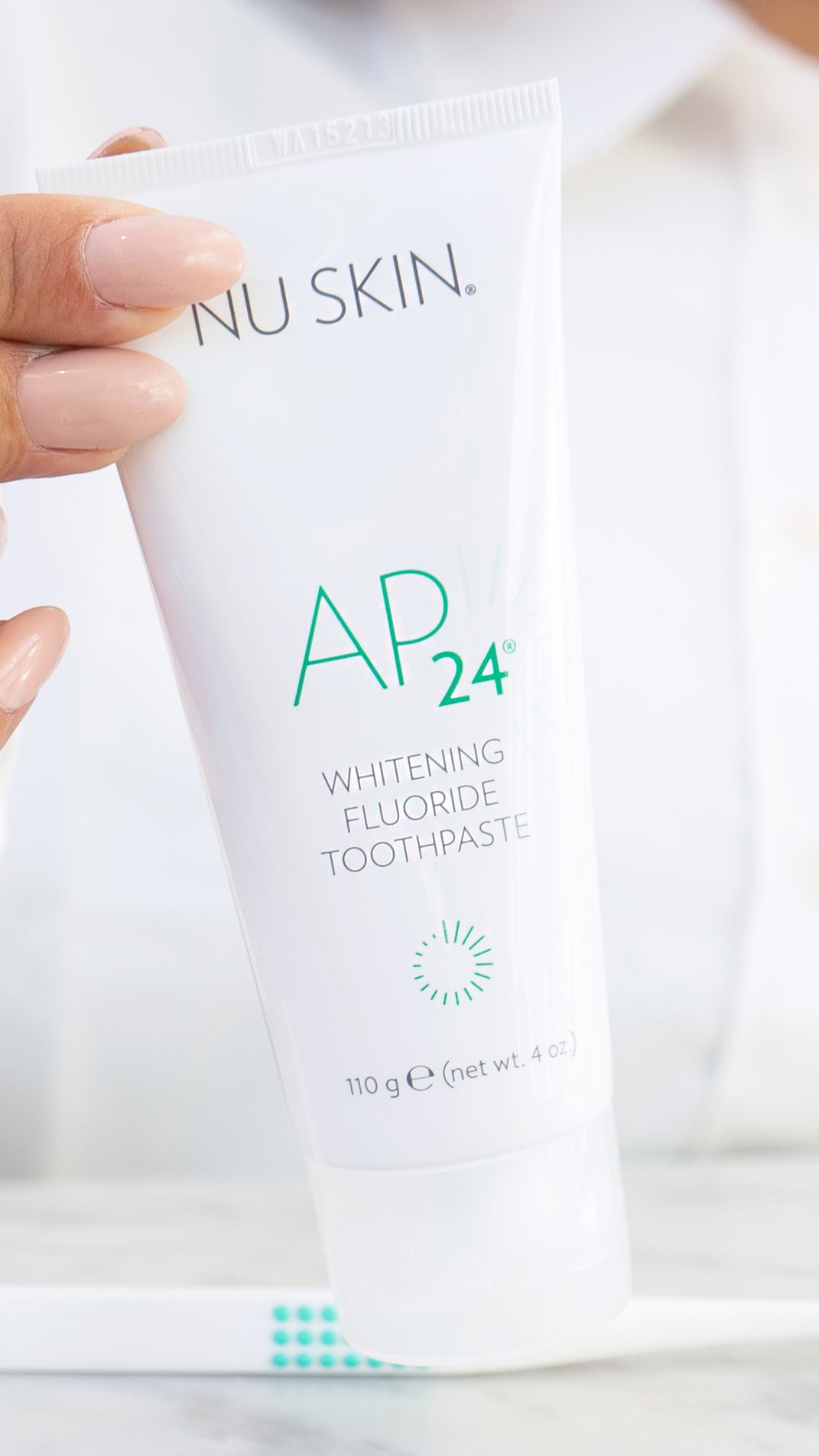 AP 24® Whitening Fluoride Toothpaste lightens teeth without peroxide while preventing cavities and plaque formation. This gentle, vanilla mint formula freshens breath and provides a clean, just-brushed feeling that lasts all day.