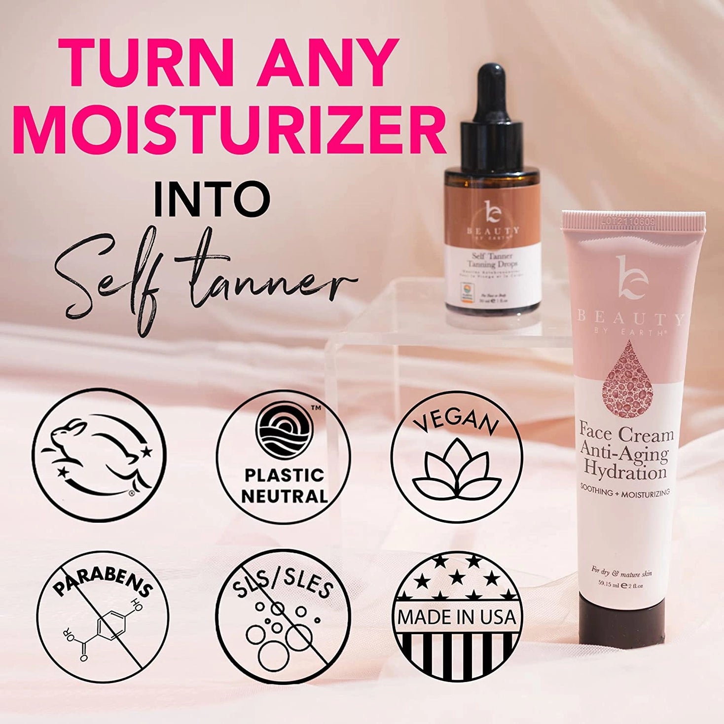 These self tan drops can be used to customize your own face tanning lotion or body tanner lotion. Mix with your favorite moisturizer and simply use more or less drops depending on the desired color. Start out with less, and add more as needed. There is a reason why we have the highest rated self tanner. Our sunless tanner drops are formulated with natural & organic, skin loving vegan ingredients like aloe vera and coconut water. Have a gorgeous looking natural self tan without the stench or orange hue. Mix our tanning face drops with your favorite face moisturizer to have your own face tanner lotion. Or mix our fake tan drops with your body lotion for a natural looking body bronzer.