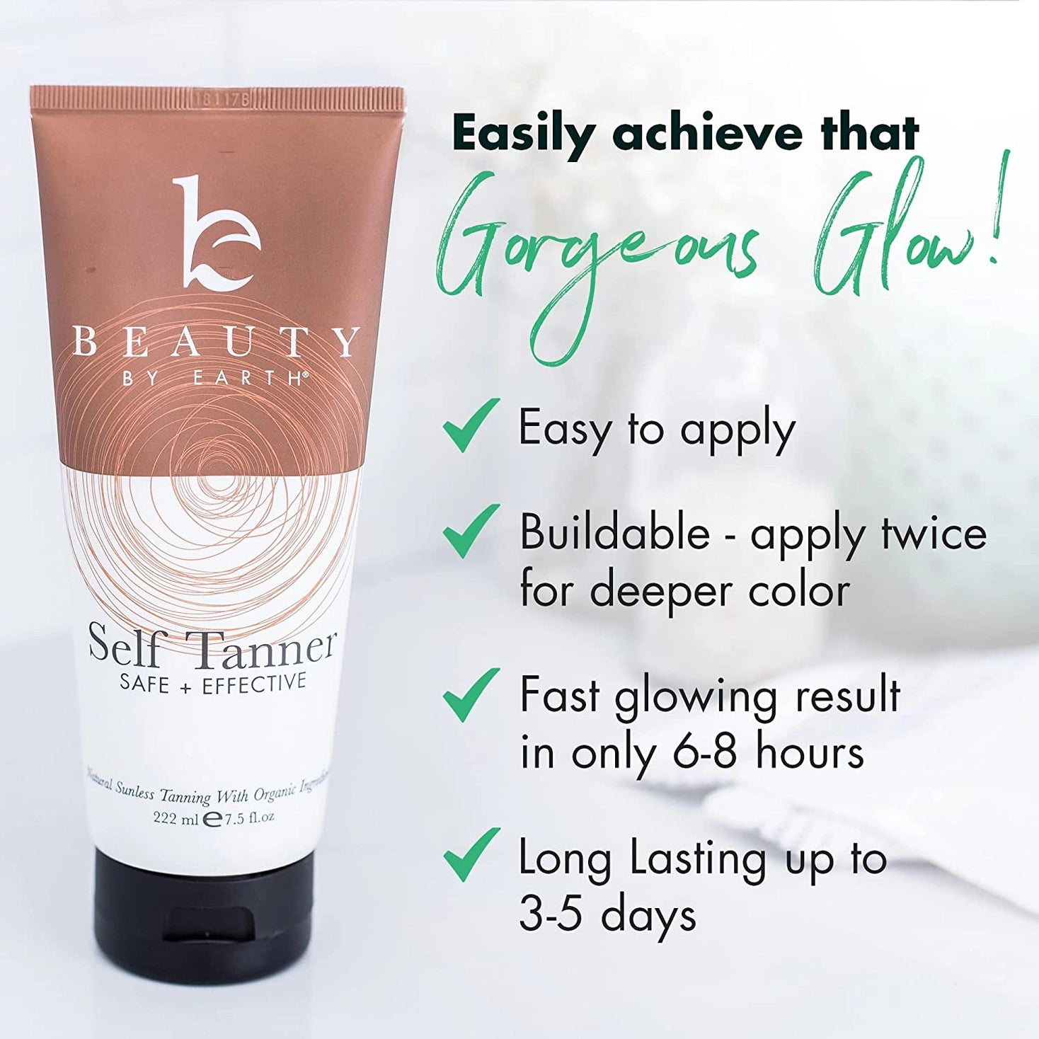 Our best selling clean Self Tanner is the solution you’re looking for! You’ll get the beautiful, healthy tan you want without exposing your skin to harsh UV rays or the dyes, fragrances, and fillers used in conventional fake tans. This ultra-hydrating sunless tanning lotion has zero dyes or synthetic junk, all while giving you a natural-looking glow.