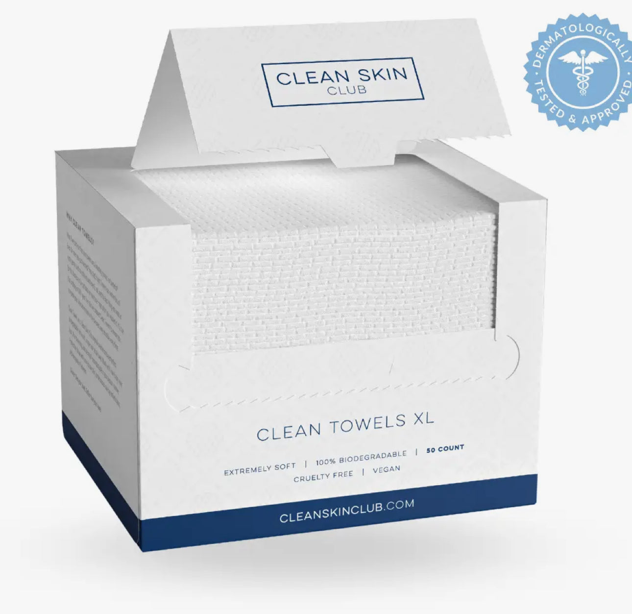 Clean Towels are the first single-use and 100% USDA bio-based face towel. They were created to complete every skincare routine in the cleanest way possible, ensuring the skin is perfectly clean and untouched by bacteria and germs that can harbor on regular washroom towels. The Clean Towels are famed for their durability, ultra-soft texture, and leaving you feeling fresh, clean, and confident in your skincare. Interchangeable and versatile; they can be used in a multitude of different ways- wet or dry. Beyond drying your face, you can use them to remove makeup, to cleanse with, and much more.