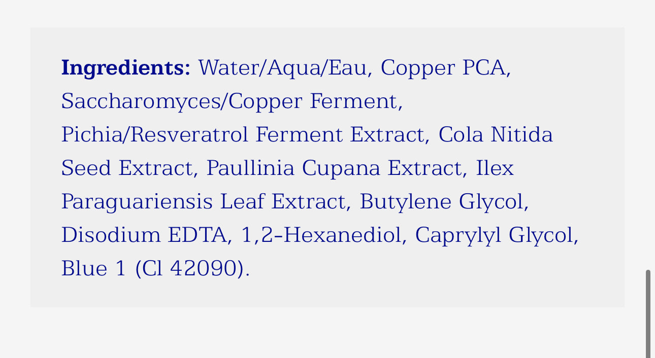 This refreshing treatment mist provides potent antioxidant protection and defends against the visual signs of aging while instantly hydrating, smoothing, and firming the look and feel of skin. Copper Firming Mist helps support the skin’s natural balance by featuring a combination of Copper and botanically sourced PCA.
