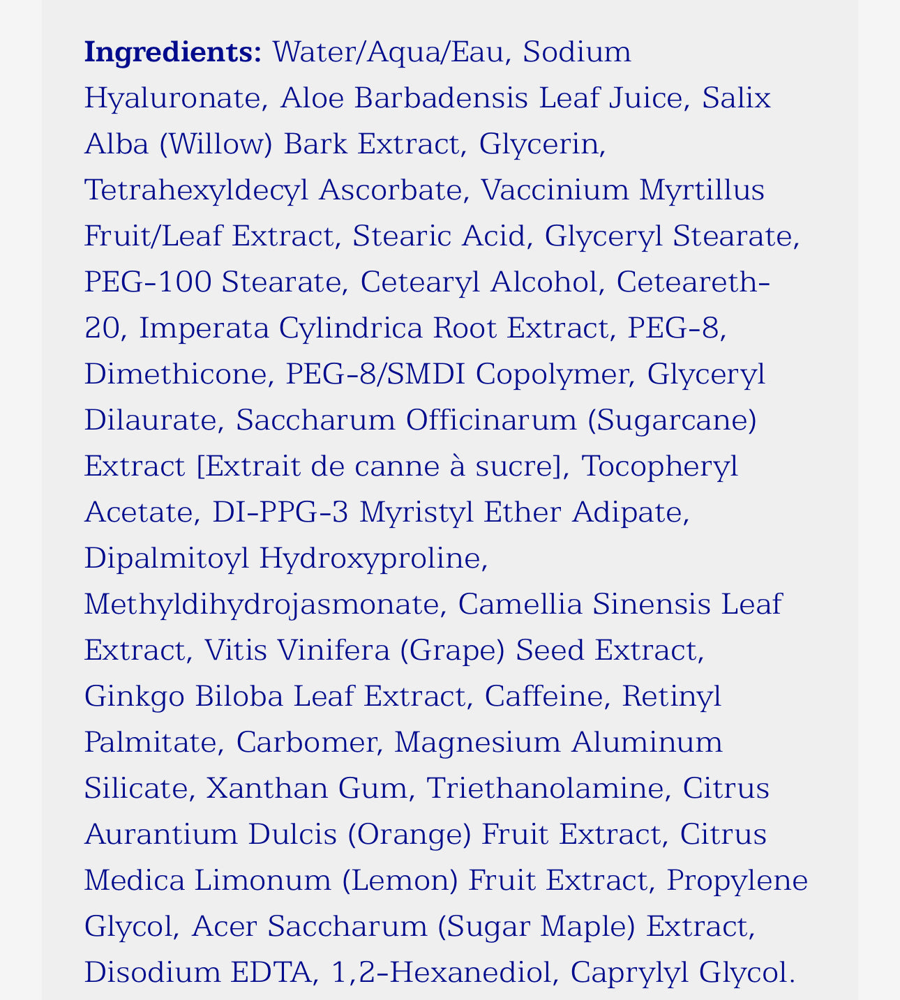 A powerful yet gentle botanical formula, Eye Complex combines mild exfoliating ingredients and skin brighteners to rapidly reduce the appearance of under-eye puffiness, while providing hydration and potent antioxidant protection. Long-term benefits include the visible reduction of fine lines and wrinkles, and the brightening of dark under-eye circles.