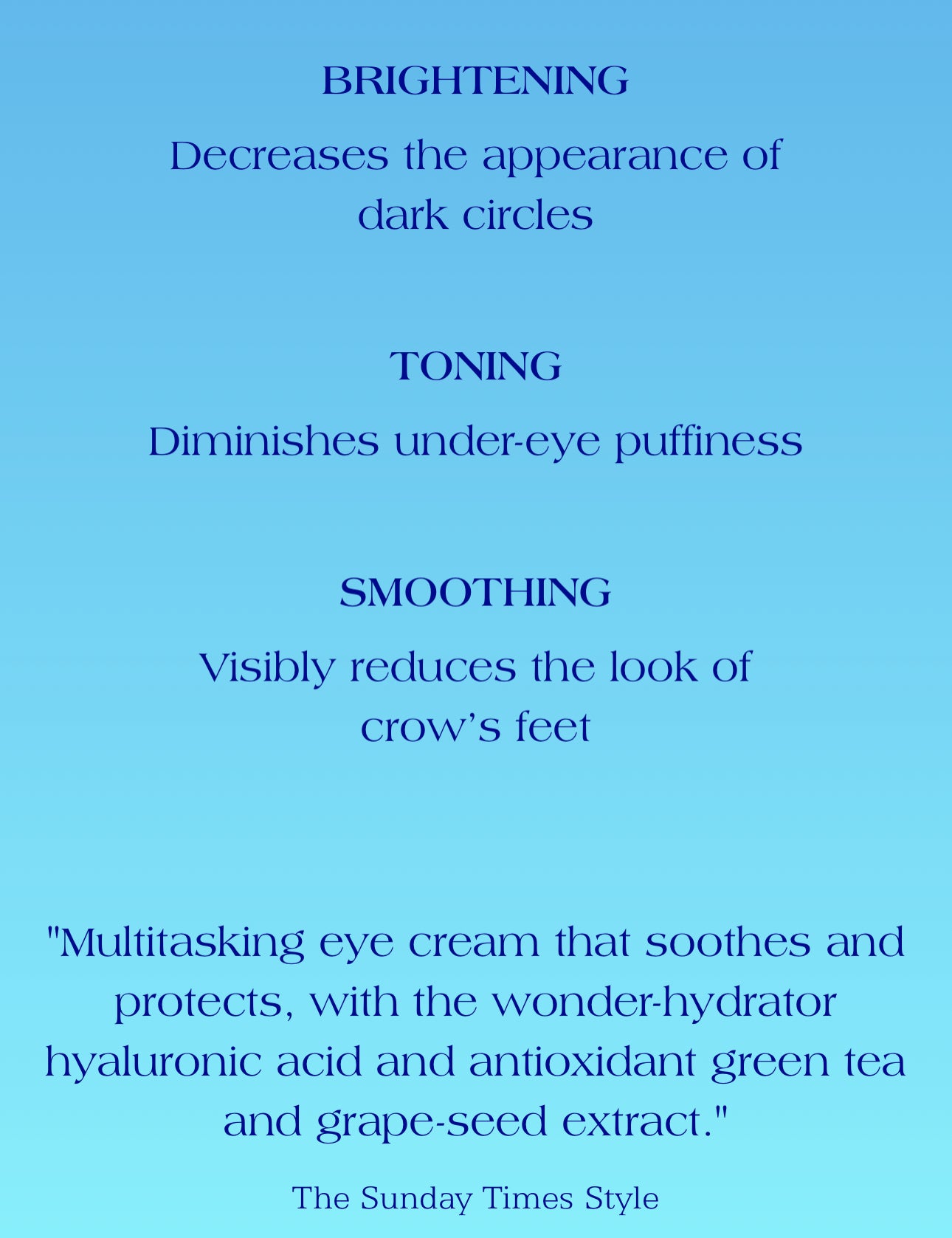 - Reduces the appearance of periorbital fine lines and wrinkles (including crow's feet)