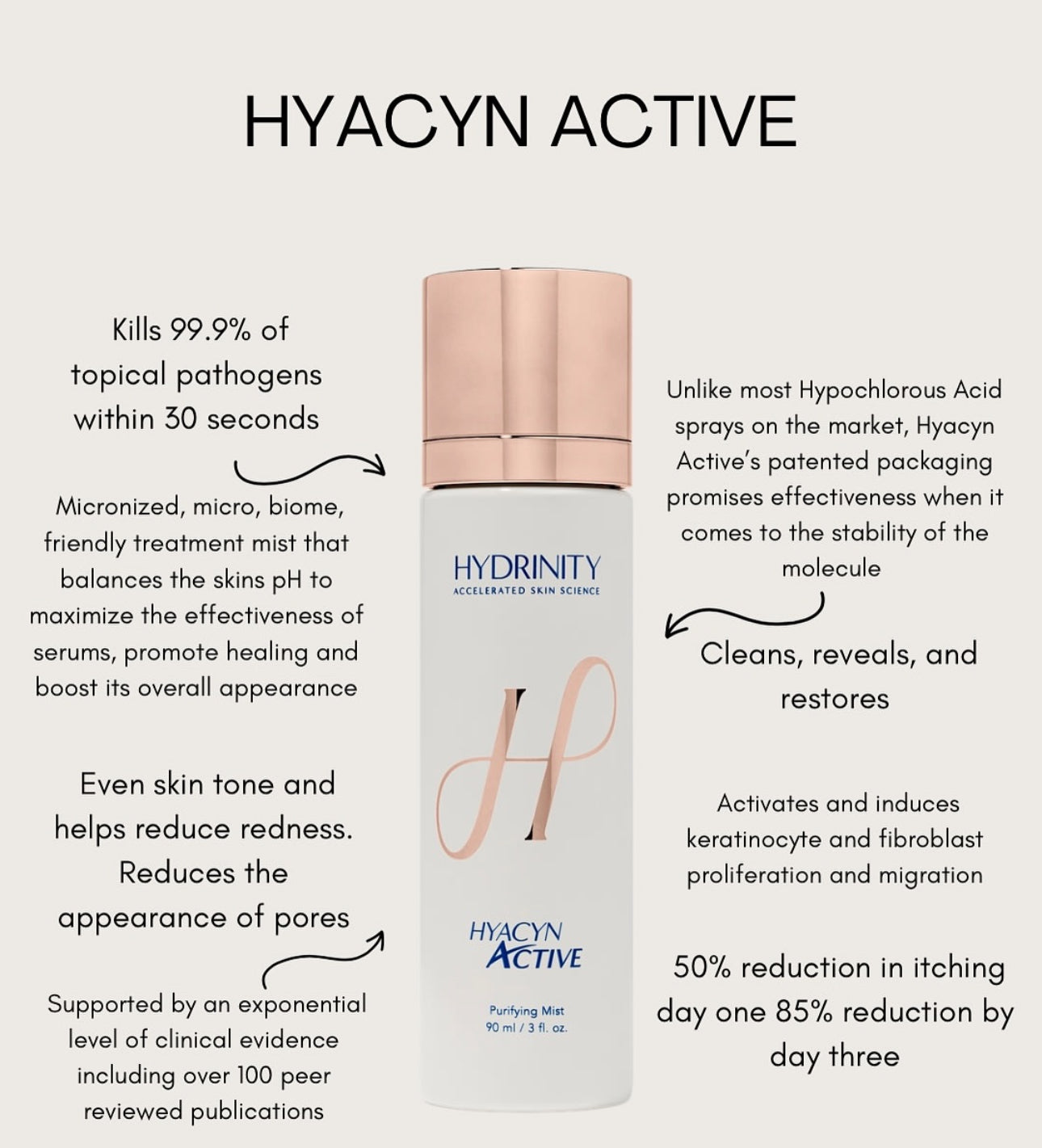 Hypochlorous Acid (HOCl) is a potent anti-microbial and anti-inflammatory agent that works overtime to treat blemishes, renew compromised skin, and deeply calm even the most stressed and sensitive skin types, including those prone to eczema, psoriasis, and rosacea. Used by dermatologists worldwide, this refreshing purifying mist is renowned for its wound-healing abilities, is free of all chemical irritants, and safe for all skin types.