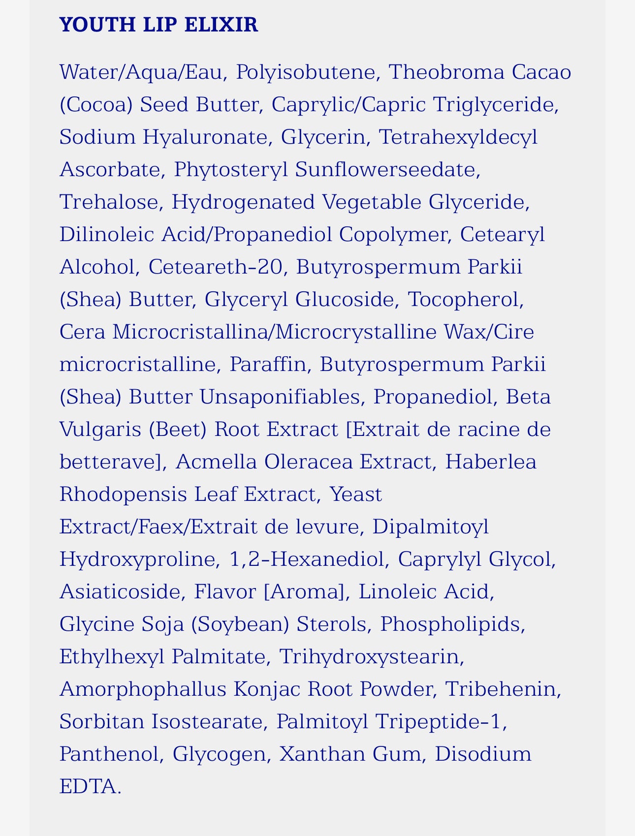 - Nourishing crème complex provides intense and penetrating hydration, visibly improving the appearance of dry and dehydrated lips