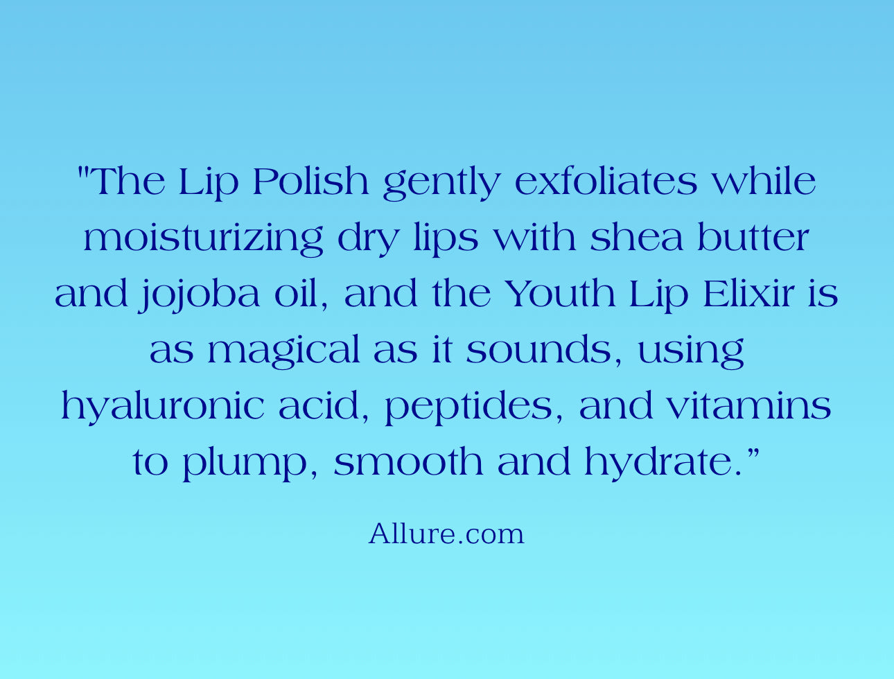 Youth Lip Elixir is a luxurious and highly moisturizing elixir that visibly smooths and hydrates as it enhances, softens, and plumps the overall appearance of the lips. This innovative formula combines the purest and most powerful clinically proven botanical extracts and antioxidants including: Hyaluronic Acid, Vitamins C, E, & B5 Shea & Cocoa Butter, and our proprietary combination of Extremozymes, which provide unprecedented multi-level protection against dangerous environmental aggressors.