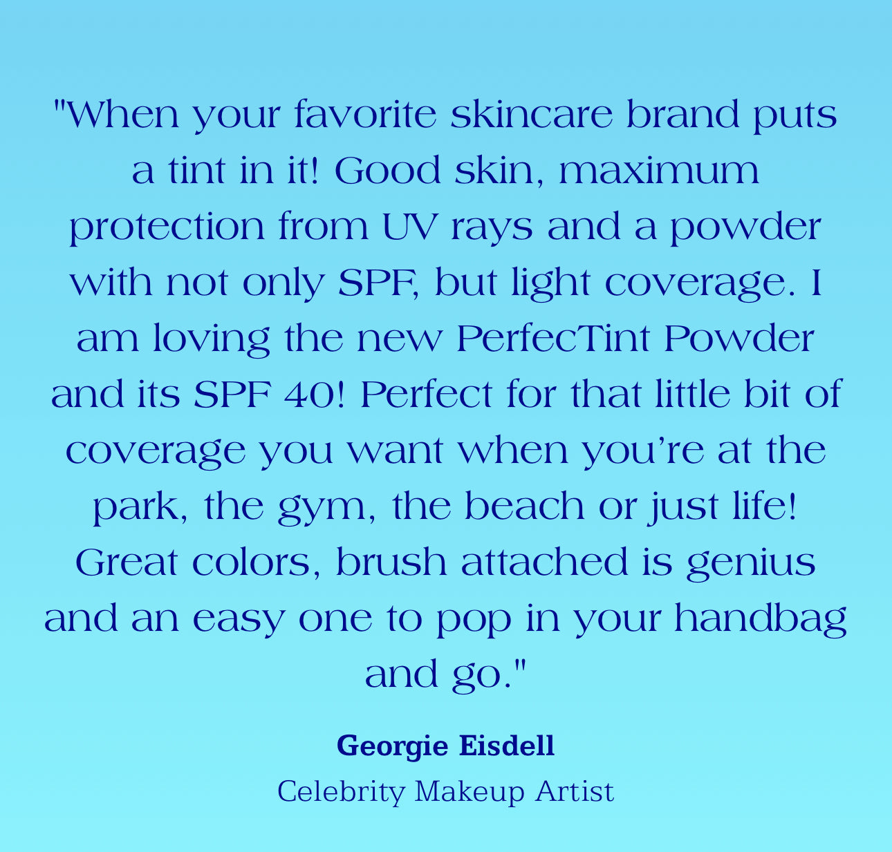 PerfecTint Powder SPF 40 provides silky smooth broad spectrum coverage to help protect skin against the visible signs of photoaging while minimizing the appearance of pores and absorbing surface oil to create a flawless finish. This luxurious formula features our botanical antioxidant Extremozyme technology which is clinically proven to help protect skin from environmental stressors while providing hydration even in powder form. Available in five tints to tastefully match any skin tone from ivory to deep. Excellent for sports, face, neck, décolleté, scalp, and all over protection.