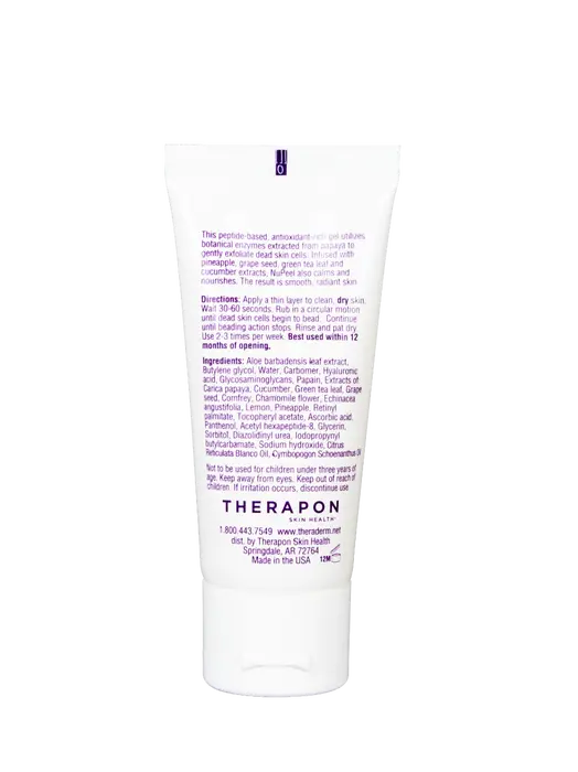 Gently removes dead skin cells to promote glowing, radiant skin appearance. Utilizing papaya/papain enzymes to naturally exfoliate, and packed with a number of botanical extracts like aloe, pineapple, grape seed, green tea leaf and cucumber, NuPeel is like an at-home, natural facial peel in a bottle.